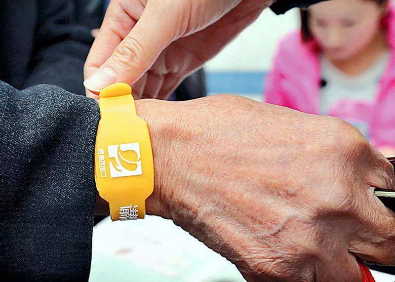 ▲為老年人佩戴“黃手環(huán)”,可減少老人走失或幫助走失者回家