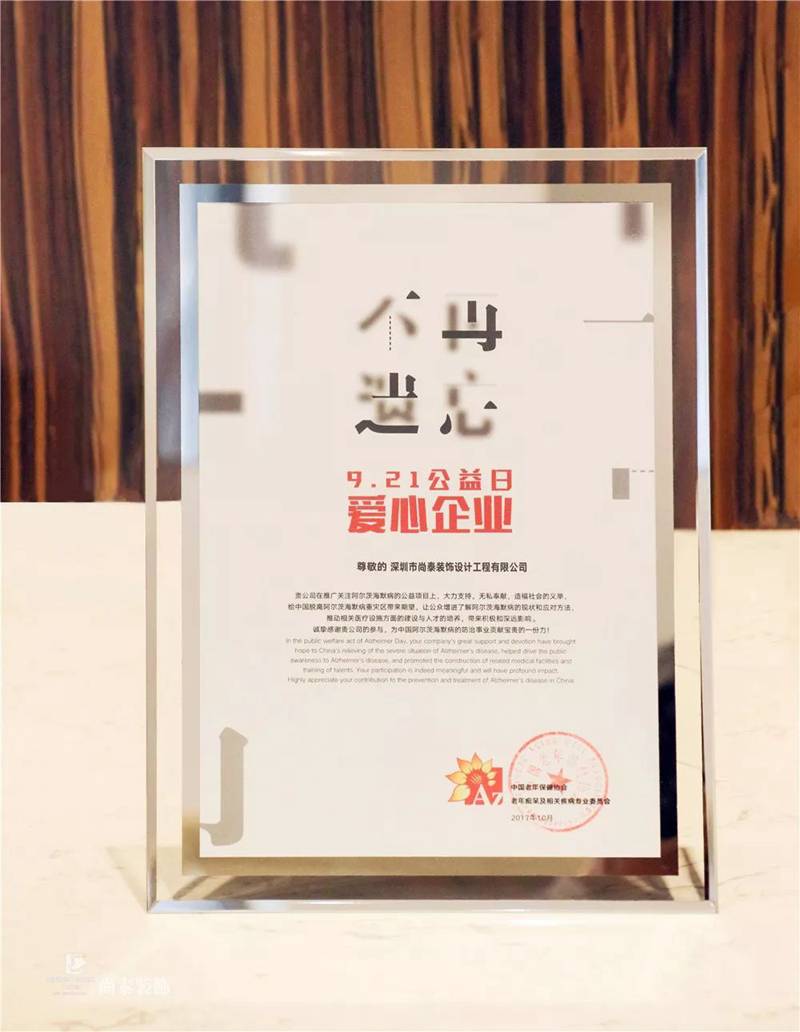 當(dāng)天,尚泰裝飾與其他125家企業(yè)共同為愛(ài)發(fā)聲,張鈞甯 、大張偉 、謝霆鋒等35位明星參與倡導(dǎo),創(chuàng)意阿爾茨海默病字體使用達(dá)到10.5萬(wàn)次,一起關(guān)愛(ài)阿爾茨海默病患者,讓老人不再遺忘關(guān)于愛(ài)的記憶!
