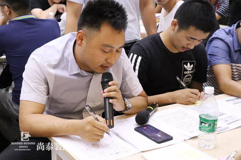 第一天的課程精彩不斷,特別是在場(chǎng)景模擬第一次與“客戶”電話邀約環(huán)節(jié),每一組代表設(shè)計(jì)師都要在“眾人目視”之下?lián)芡ā翱蛻簟彪娫?,了解“客戶”需求,絞盡腦汁獲得更多的“客戶”信息,邀約“客戶”見面,化解“客戶”的種種“刁難”,并且“客戶”會(huì)一直“陪伴”到整個(gè)培訓(xùn)課程結(jié)束,親臨現(xiàn)場(chǎng)聽取設(shè)計(jì)師的最終“方案匯報(bào)”,通過最接近真實(shí)的模擬演練,真正達(dá)到培養(yǎng)設(shè)計(jì)師營(yíng)銷能力與設(shè)計(jì)能力的高強(qiáng)度學(xué)習(xí)效果!