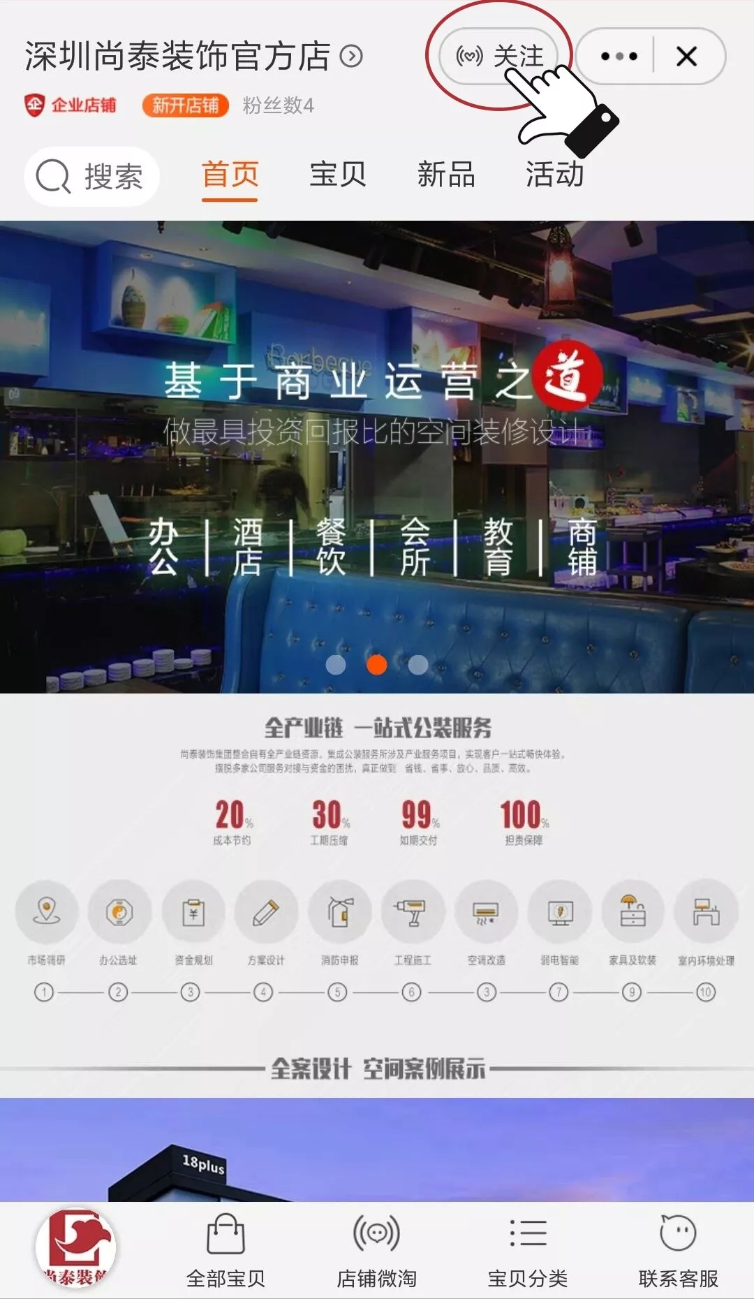 4、進入淘寶搜索“深圳尚泰裝飾官方店”,進入店鋪并關注,截圖發(fā)送給客服。