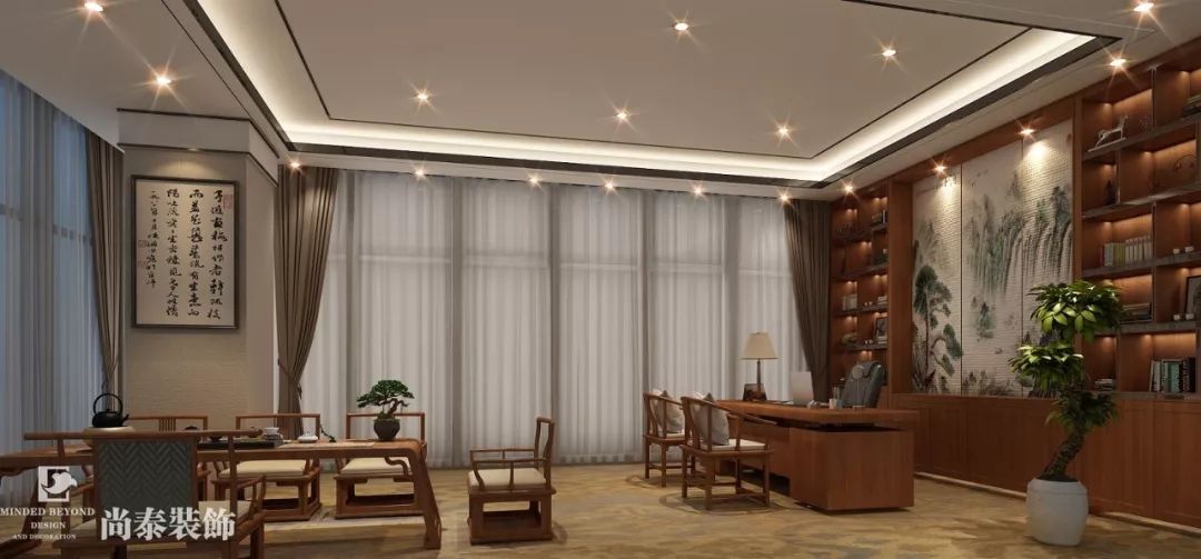 董事長(zhǎng)辦公室聞茶、望山,充滿(mǎn)東方氣質(zhì)美學(xué)的一個(gè)空間。