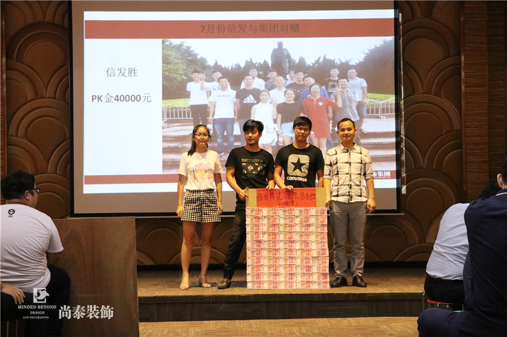 在贏得霸氣、標(biāo)桿榜樣的時(shí)刻,7月份各分公司業(yè)績(jī)PK及排名無(wú)疑牽動(dòng)著現(xiàn)場(chǎng)人員的心,尚泰裝飾設(shè)立為每個(gè)月份業(yè)績(jī)突出的分公司及團(tuán)隊(duì)授予榮譽(yù)和PK金作為獎(jiǎng)勵(lì),樹(shù)立標(biāo)桿和榜樣,以激勵(lì)大家再接再厲!