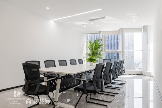 結(jié)合天花裝飾結(jié)構(gòu),可采用懸吊式燈具或隱藏式燈具形成燈帶。小會議室要加強光影效果,避免小空間帶來的壓抑感,可以采用上下都可出光的間接照明燈具,均勻照亮天花和墻壁(此處僅作參考)。