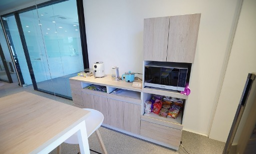 員工休息室必備的茶水柜,滿(mǎn)足員工的口欲,不只妥善安排電器的空間,更安排零食置放空間,方便員工拿取,讓員工擁有幸福感。