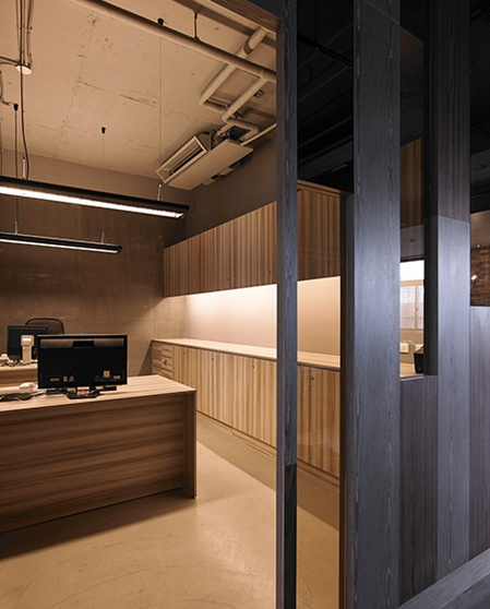 ▲進(jìn)門的玄關(guān)處,以水泥墻搭配公司顯眼的 LOGO,充分展現(xiàn)出低調(diào)簡約的個性;輔以仿古沙發(fā)的雅致,流露出深度的內(nèi)涵