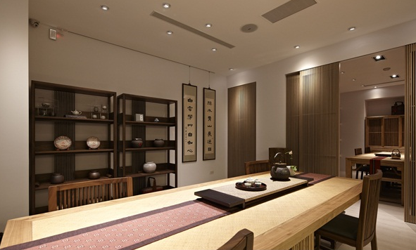 本案位于深圳市南山區(qū),是一間由日本茶道老師授課的茶道教室以及販?zhǔn)鄹邫n茶葉的商業(yè)空間,從事房地產(chǎn)的屋主也希望能將此空間作為招待親友客戶的會所,以培養(yǎng)自己的人脈關(guān)系。屋主希望能跳脫已往嚴(yán)謹保守的傳統(tǒng)日式風(fēng)格,并且注重空間質(zhì)感與舒適度,因此,設(shè)計師便以淺色木建材以及溫暖柔和的燈光設(shè)計,營造明亮清爽的舒適氛圍。在設(shè)計師巧妙的安排之下,屋主珍藏的藝術(shù)品與空間相互搭配,彼此相輔相成,展現(xiàn)沉穩(wěn)內(nèi)斂的人文氛圍,屋主表示喜歡這些藝術(shù)品的客人,也能將它買下帶回家。在門面上的設(shè)計上,希望一眼就能讓客人感受到質(zhì)感與品味,因此設(shè)計師在門面上加入許多的巧思。