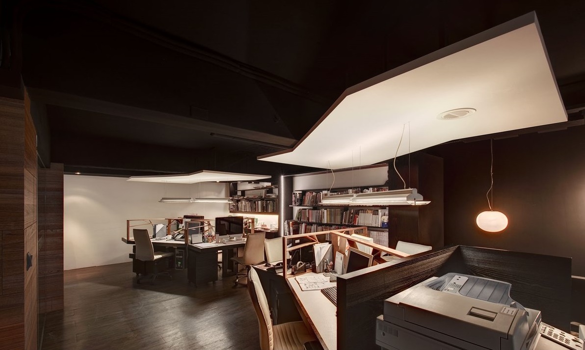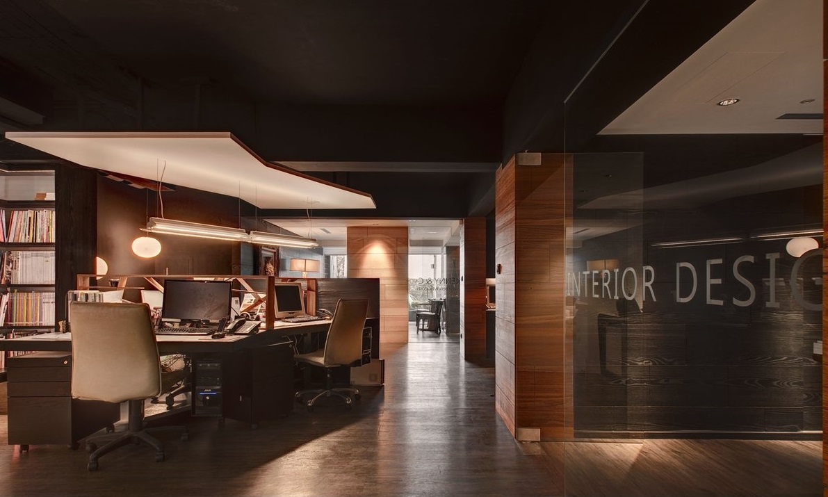 推開大門,以多層次圓天花板造型的門廳作為情緒轉(zhuǎn)換的緩沖地帶,而門廳旁以清透玻璃隔出的會議室兼洽談區(qū),散發(fā)著如家的舒適感,紋理斑駁的木質(zhì)地板與沙發(fā)背墻勾縫精致的熏黑木料質(zhì)感,處處透顯出設(shè)計師獨(dú)到的美學(xué)品味。再往內(nèi)走則是工作區(qū)域,性格沈穩(wěn)的風(fēng)格基調(diào),與靠墻的大型書柜相輔相成,釋放著內(nèi)斂的人文氣質(zhì)。工作站設(shè)計為獨(dú)特的三向星芒狀,給人隨時都能進(jìn)行小組會議般的機(jī)動感,在明管明線的漆黑天花板襯托下,兩段吊掛式天花板塊如同振翅的羽翼,象征著尚泰裝飾拒絕自我設(shè)限的企圖心。而整個辦公室的設(shè)計,由外觀的精致導(dǎo)入內(nèi)部的多元事務(wù)機(jī)能,將情境動線的起承轉(zhuǎn)合,掌握得恰到好處,也寓示著將有更多美好的設(shè)計將由此發(fā)生。