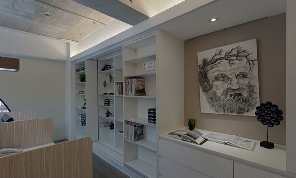 2. 完善收納機(jī)能提升效率:辦公時(shí)最討厭的就是找不到東西了!運(yùn)用墻面打造活動(dòng)式展示柜,不但能增加收納機(jī)能,同時(shí)也能讓所有物品一目了然,工作效率自然提升啰!