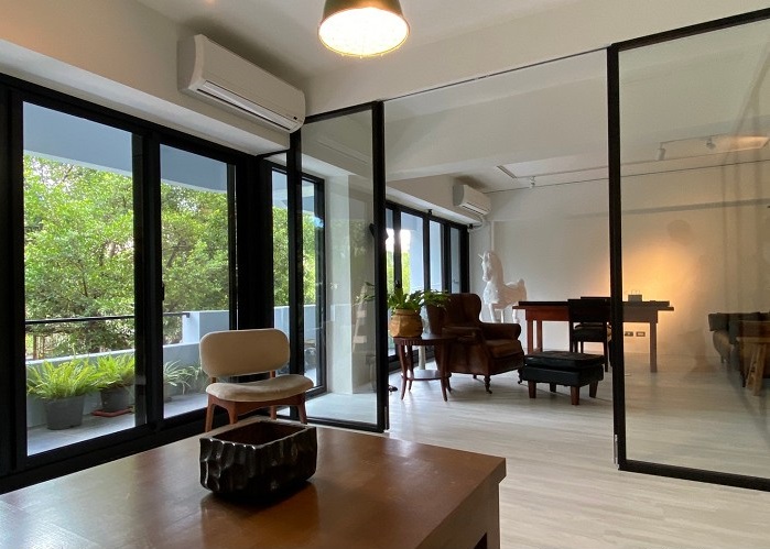 ▲光線由外穿透玻璃進入室內(nèi),整體視覺化通透明亮,破除隔間限定,使視覺坪效再放大。