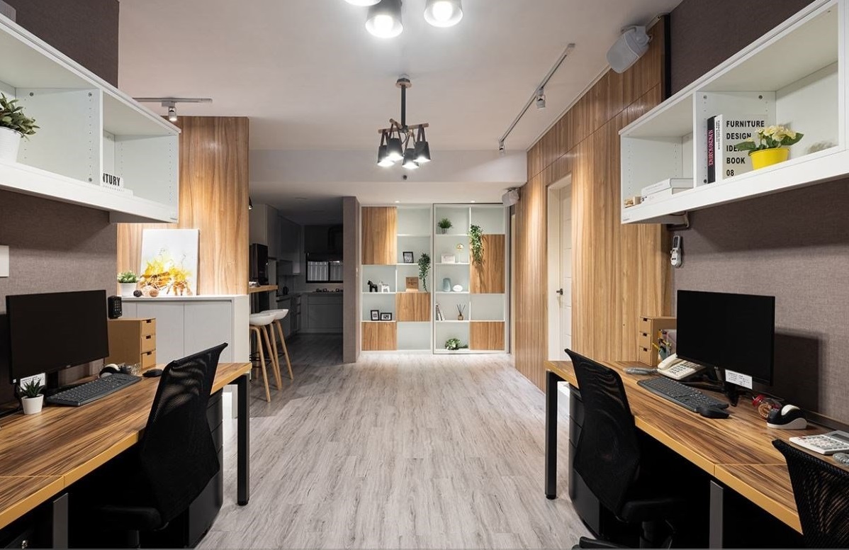 25 坪長型老屋全面重啟!休閑吧臺、旋轉(zhuǎn)書柜,待九個小時也不倦怠屋主是對于美容產(chǎn)品相當有研究的創(chuàng)業(yè)家,希望空間可以改造成工業(yè)風,但不想要過于粗獷,所以設(shè)計師在室內(nèi)采取大地色系的壁紙,搭配大面積的木質(zhì)調(diào),營造出溫暖有個性的空間氛圍。由于采光較為不足的關(guān)系,空間盡可能采用開放式設(shè)計,結(jié)合風格獨特的造型吊燈,跳脫一般辦公空間的制式印象。