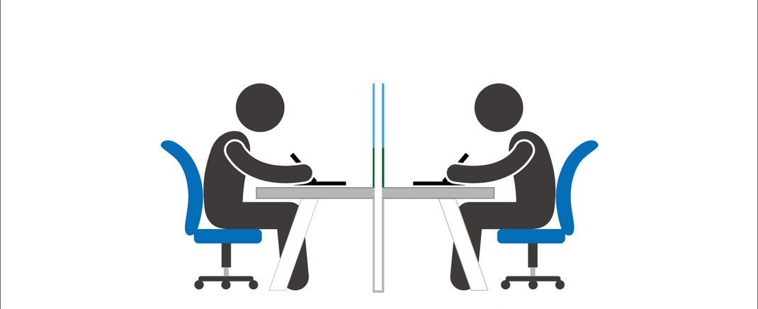 1.OA屏風(fēng)座位:一般個人的辦公桌尺寸桌面深度基本上有1750px深,若是面對面的辦公座位,加上OA屏風(fēng)厚度后辦公距離接近1.5公尺,抬頭交談時建議須注意社交距離,若辦公屏風(fēng)高度夠高,形成桌面隔板,有區(qū)隔之效達到辦公室防疫標(biāo)準。
