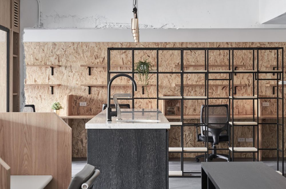 不想讓日日工作的空間顯得一成不變,最有效的方式莫過于從墻面玩變裝游戲,像是帶有斑爛木紋的OSB板材,能為室內(nèi)創(chuàng)造獨特風(fēng)格的端景,同時吸音;