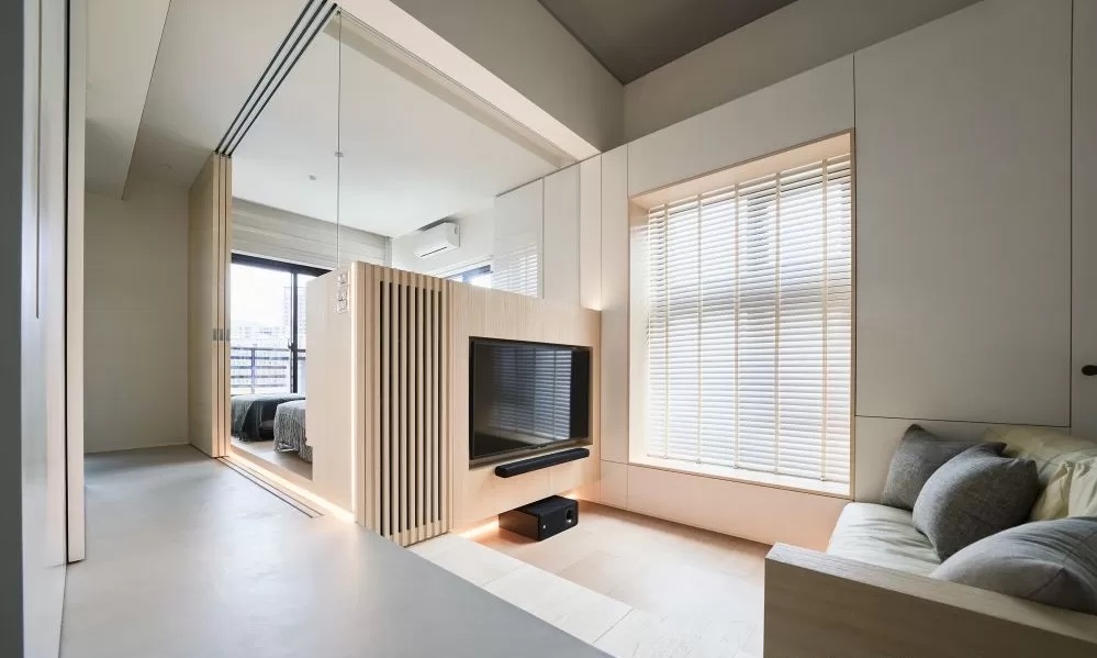 過(guò)多隔間墻會(huì)讓空間變得破碎,裝修時(shí)除了要避免多馀隔間占用坪數(shù)之外,最好也能運(yùn)用具活動(dòng)特性的輕隔間來(lái)界定區(qū)域,例如透過(guò)拉門、折疊門或滑動(dòng)墻等設(shè)計(jì),創(chuàng)造多元的空間用途。由于隔間是空間里的立面量體,所以也很適合將電視墻、收納或展示柜等功能一并整合,提升坪效。