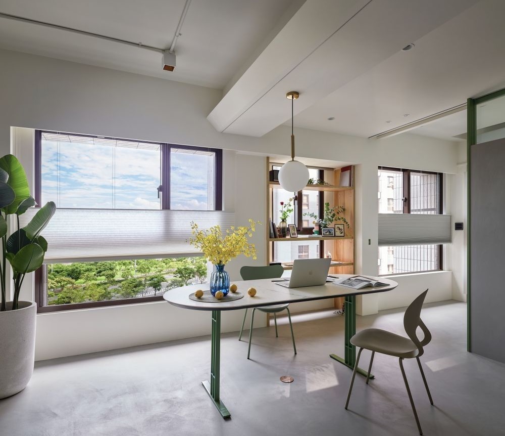 不敢相信,這真的只有30平嗎?看起來(lái)超寬敞舒適!清爽綠搭配大面窗景和充足采光,先不說(shuō)住在這里,光是在這樣的空間中上班就已經(jīng)夠幸福啦~