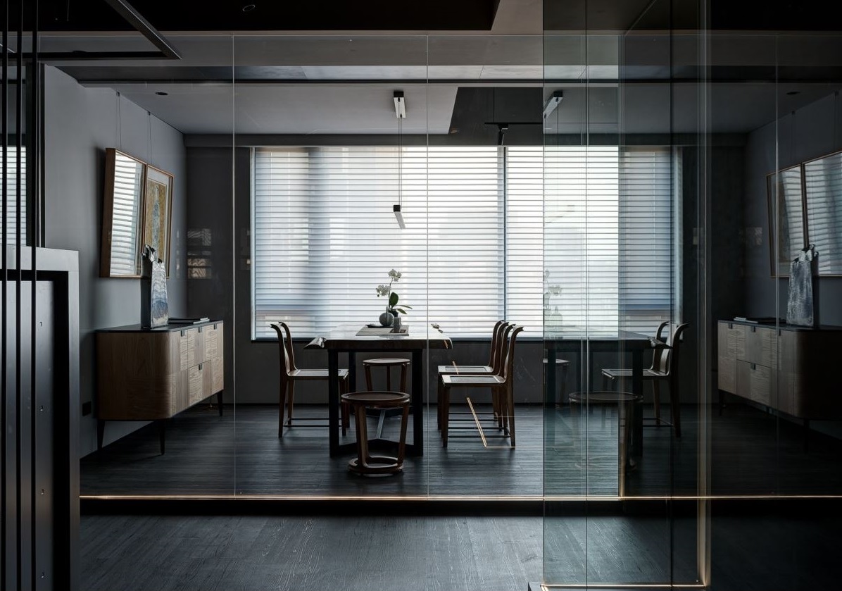 350平老屋變身新穎辦公室,設(shè)計(jì)師援引蛇紋石、鐵件、玻璃、木地板、螺旋管等建材,結(jié)合新東方風(fēng)語(yǔ)匯,在現(xiàn)代與古樸中,綻放低調(diào)華麗的新視界,快跟著小編一起來看看吧! 微光中的辦公室,安排承載歷史感的窗花,以嶄新姿態(tài)轉(zhuǎn)化為照明燈飾,并將燈光結(jié)合柜體,達(dá)到美形收納的效果,門口處因應(yīng)從一條毛線起家的企業(yè)發(fā)展源頭,在入門加入浮雕設(shè)計(jì),鏤刻著毛紡公司的記憶,運(yùn)用新的LOGO標(biāo)記蛻變的起點(diǎn),而花蓮特有的蛇紋石則不時(shí)出現(xiàn)在每個(gè)角落,以獨(dú)一無二的紋理,宣告著與土地深刻的連結(jié),帶出充滿森林感的綠意;天花板采以Loft的手法設(shè)計(jì),并在會(huì)議桌上方的天花板安排毛紡布疋,呈現(xiàn)新穎趣味的風(fēng)貌;而穿透的鐵件隔屏,則仿佛裝置藝術(shù)的存在,于空間進(jìn)行垂直、水平延伸、放大,型塑后現(xiàn)代的未來感! 小編的最愛 不論入門處的雕塑端景、廊道盡頭的花藝布置,甚至董事長(zhǎng)辦公室內(nèi)待客迎賓泡茶的桌、椅,每一件軟裝布置都經(jīng)過縝密安排,成功創(chuàng)造仿佛居家空間的溫暖氣氛,讓員工及到訪賓客,享有賓至如歸的舒適感受!