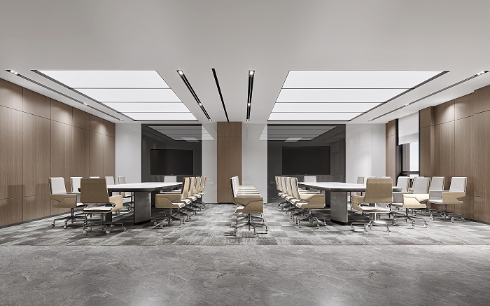 3、會議室作為多功能空間,其功能性必須得到充分考慮。深圳企業(yè)多元化,會議的類型各異,裝修應充分滿足不同需求。通過可移動隔斷墻、投影設備、音響系統(tǒng)等,可以使會議室在不同場合下靈活變化,既能承載大型演講,又能容納小組討論,確保了空間的高效利用。