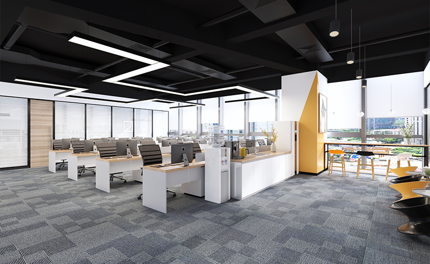 采用“減法設計”降低硬裝成本,頂面裸露管線刷漆搭配線性燈,墻面選環(huán)保乳膠漆局部點綴,地面用PVC鎖扣地板或局部方塊地毯平替高端石材。尚泰裝飾的模塊化設計可實現(xiàn)空間靈活復用,如折疊會議桌兼顧開會與臨時工作需求,玻璃隔斷打造通透感的同時節(jié)省建材費用。