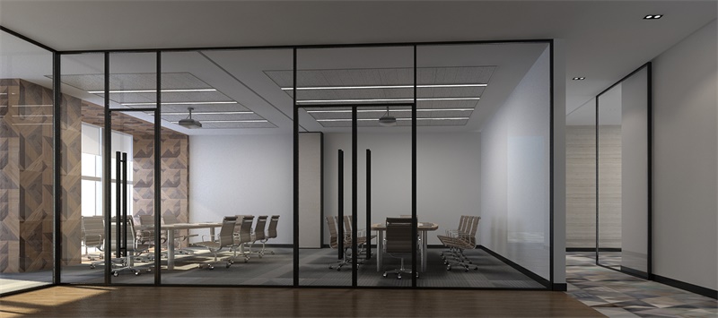 ③、會議室的裝修則要考究的多,首先它必須作為一個獨立的空間存在,因為它承載了很多用途,比如員工的培訓與交流,可以展示一些活動照片,獎杯等等,再者它有時也可以用來作為接待客戶的場所,所以公司的一些榮譽證書,錦旗等都可以擺放在里面,用來彰顯公司的實力。