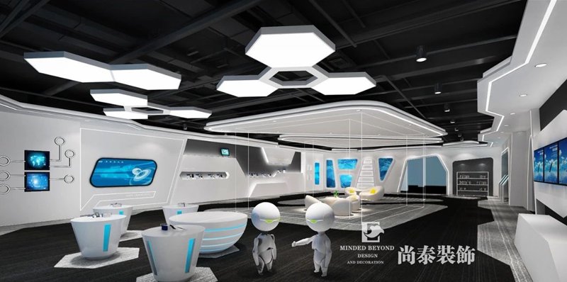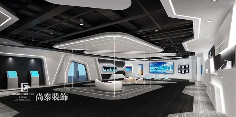 展廳的設計,通過對空間的合理規(guī)劃,劃分為企業(yè)文化展廳和產(chǎn)品展廳兩個區(qū)域,既有空間上的區(qū)別,而又相互關聯(lián),滿足公司對企業(yè)文化的宣傳、產(chǎn)品的展示及洽談合作的功能需求,展廳色彩上以黑白為主,通過墻面造型及燈光的設計,體現(xiàn)現(xiàn)代科技感,突出產(chǎn)品的展示。