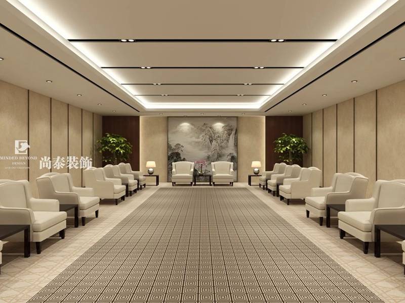 針對董事長辦公空間及VIP接待區(qū)域,設計師熟練運用對稱設計凸顯方正之美,更多地采用傳統(tǒng)中式元素,將“水墨”、“祥云”等元素融入到辦公室的設計當中,盡顯古典韻味及成熟大氣。