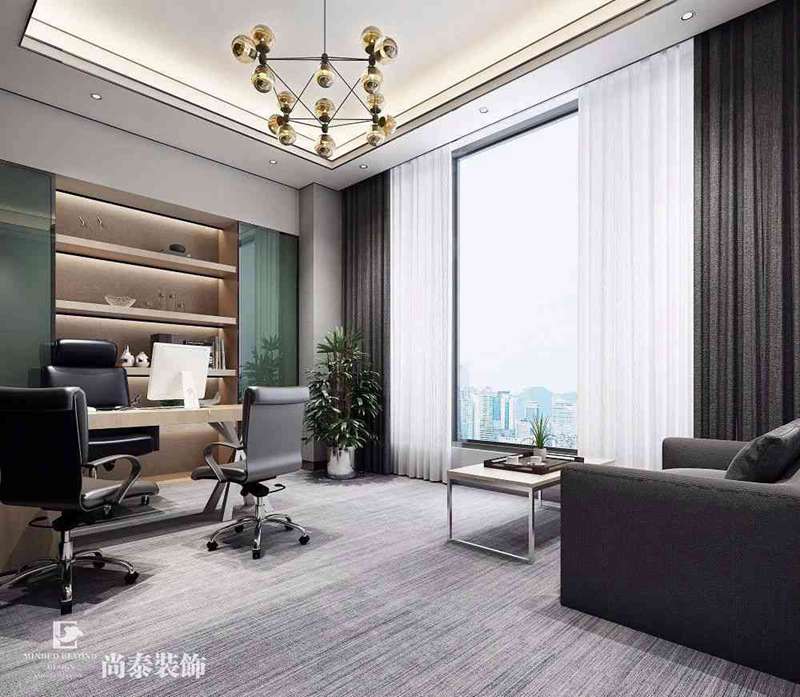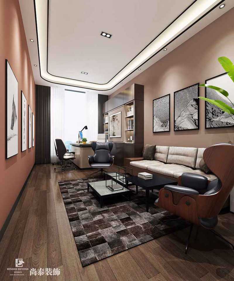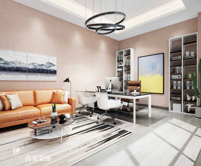 本案作為現(xiàn)代時尚風(fēng)格的辦公室與展廳一體化空間,尚泰裝飾的辦公室裝修設(shè)計定位即是簡潔時尚與展廳奢華藝術(shù)漆料的展示,通過部分風(fēng)格獨(dú)特的軟裝搭配結(jié)合天花燈光效果,營造出現(xiàn)代感極強(qiáng)的辦公氛圍和浪漫的異國情調(diào)樣板間空間。