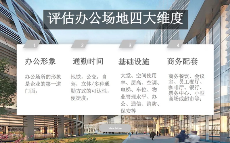 b.評(píng)估辦公場(chǎng)所時(shí),可以關(guān)注這四大基礎(chǔ)維度。