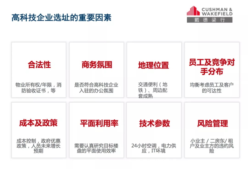 另外,在針對(duì)快速成長型企業(yè)中的代表-高科技企業(yè)選址,也有6項(xiàng)需要重點(diǎn)關(guān)注的因素: