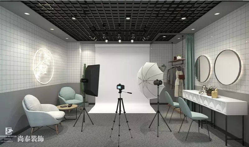 整個(gè)布景現(xiàn)代,簡(jiǎn)潔以及溫馨,墻面采用幾何圖形,搭配化妝桌椅和鏡面,還配有茶幾和采訪桌椅,將現(xiàn)代時(shí)尚完美的詮釋出來。
