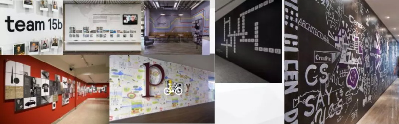 走道根據(jù)企業(yè)文化,制作創(chuàng)意涂鴉手繪,利用公司二維碼分散造型在辦公區(qū)外墻,現(xiàn)代科技感,國(guó)際化。