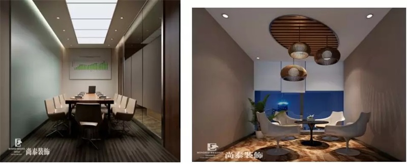 洽談室接待室作為接待客戶的重要場所,首先就是考慮舒適大氣,讓客戶感覺到溫馨跟品質(zhì),天花采用造型吊頂,地面采用地毯的形式,墻面以局部造型跟玻璃組合的形式達(dá)到效果。