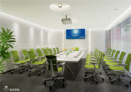 尚泰裝飾對朵唯會議室的主墻,以凸面墻為依襯,突出墻面的層次效果。明亮的會議室,簡約的純凈色調(diào),給人以無限的暢游空間。