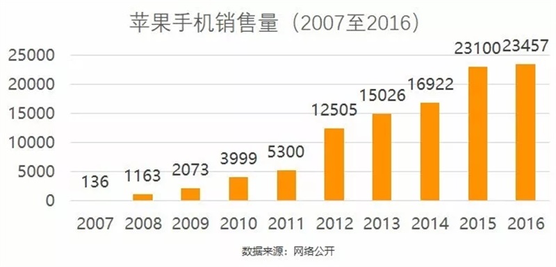 通過(guò)上面這張圖,我們可以看出截止至 2017 年,智能手機(jī)高速增長(zhǎng)的時(shí)代已經(jīng)結(jié)束了,產(chǎn)品的出貨量已經(jīng)開(kāi)始下降。