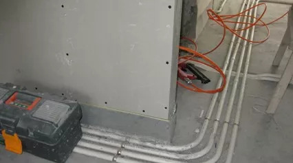 在濕區(qū)進行輕質(zhì)隔墻施工時,為阻隔地面濕氣對隔墻的影響,采取地面混凝土止水帶工藝,并采用鍍鋅輕鋼龍骨作為隔墻基層,確保墻體無霉變與乳膠漆脫落。