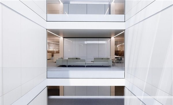 蘋果向來對(duì)待自己的產(chǎn)品都是極致嚴(yán)苛,要求精益求精,新總部辦公樓自然不例外。在專注辦公裝修的尚泰裝飾看來,無論外部還是內(nèi)部,Apple Park的設(shè)計(jì)與蘋果產(chǎn)品一脈相承,貫切蘋果一貫注重的簡(jiǎn)約、線條美,同樣采用充滿高級(jí)感和冷淡風(fēng)的白色、金屬銀、透明等元素的設(shè)計(jì),設(shè)計(jì)語言處處都融入了蘋果標(biāo)志性的“曲率圓角”,簡(jiǎn)約但不簡(jiǎn)單。
