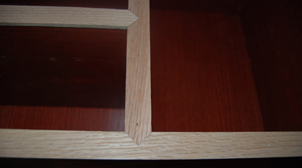 墻面網(wǎng)格布防裂工藝:防止墻面開(kāi)裂 先在原墻基底上以專(zhuān)業(yè)找平石膏打底,再使用專(zhuān)用防裂網(wǎng)格布大面積 覆蓋墻體,增強(qiáng)墻面的抗拉、抗裂性;最后以石膏批嵌 | 木作v字型收口防裂工藝:防止木線(xiàn)條收口開(kāi)裂 實(shí)木櫥柜的收邊條極易開(kāi)裂,尚泰在木線(xiàn)條拼接處采用V字型十字交叉,并以無(wú)甲醛白膠加強(qiáng)結(jié)合,既精致美觀又防開(kāi)裂 | |