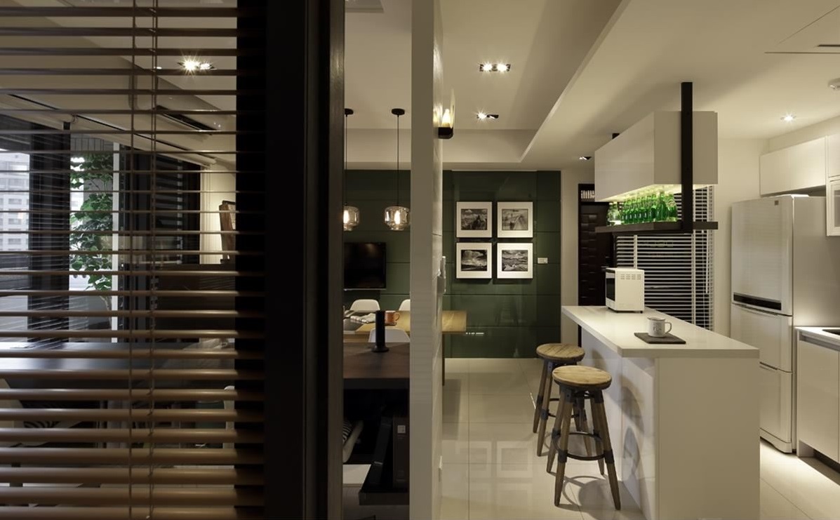 玄關(guān)旁的吧臺(tái),是小家庭的廚房也是工作團(tuán)隊(duì)放松、創(chuàng)意發(fā)想甚至辦公的好地點(diǎn),打破對空間的固有的認(rèn)識(shí),模糊住家與辦公室的界線。