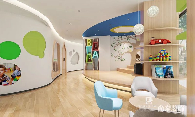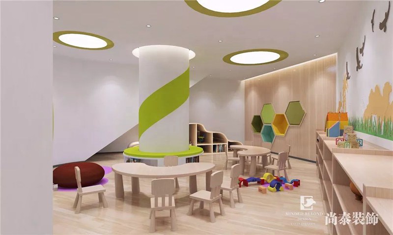 在富有藝術(shù)構(gòu)造的空間格局妝點(diǎn)五彩繽紛的環(huán)保乳膠漆,于簡潔實(shí)用融入藝術(shù)的內(nèi)涵,加上適應(yīng)兒童生理與心理特征的家具與配飾,為孩子們營造了無微不至的關(guān)懷及家庭般的氛圍。