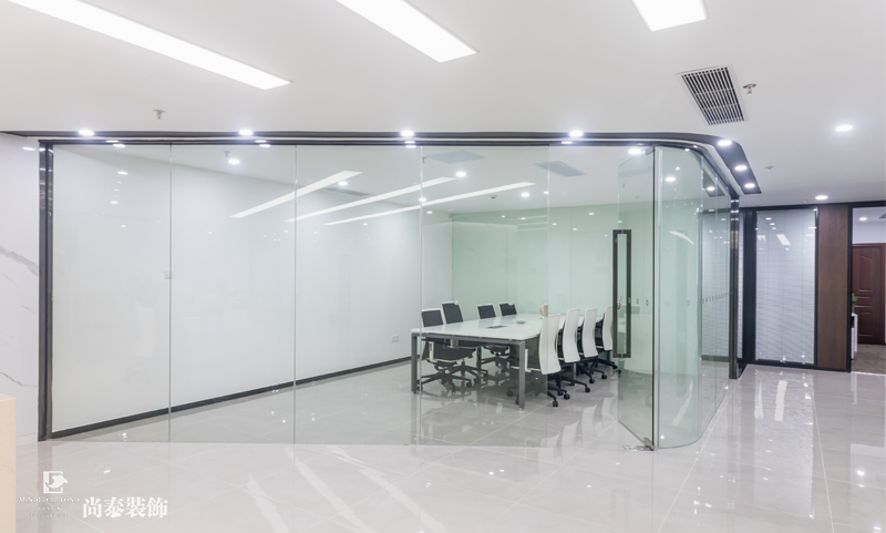 會(huì)議室裝修實(shí)拍圖,是一個(gè)除了正常辦公之外,待的最久的一個(gè)空間,早上有晨會(huì),每周有周會(huì),還有月會(huì),季會(huì)等等,本設(shè)計(jì)采用白色為主色調(diào),為了契合整個(gè)空間的色調(diào),用玻璃作為隔斷,給人一種空曠、明亮的感覺,最大程度的減輕了員工的壓力。