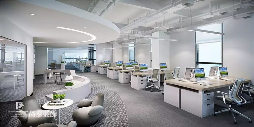 ?本案為前海速貸通互聯(lián)網(wǎng)金融服務(wù)(深圳)有限公司(簡稱“速貸通”)的新辦公室設(shè)計,該企業(yè)是一家依托互聯(lián)網(wǎng)等技術(shù)手段,面向中小型企業(yè)及個人提供金融中介服務(wù)。這次深圳辦公室裝修公司-尚泰裝飾為其打造了一個以白色為主色調(diào),以圓弧造型搭配燈光,配備員工開放辦公區(qū)、休閑洽談區(qū),健身區(qū),管理層辦公室等功能區(qū)域,空間職能上的巧妙轉(zhuǎn)換,營造出一種高效的商務(wù)辦公氛圍:一種正式的現(xiàn)代新型辦公設(shè)計概念。