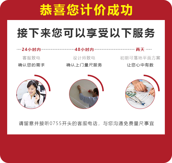 24小時上門量房 48小時方案預(yù)算 72小時效果參考 |
